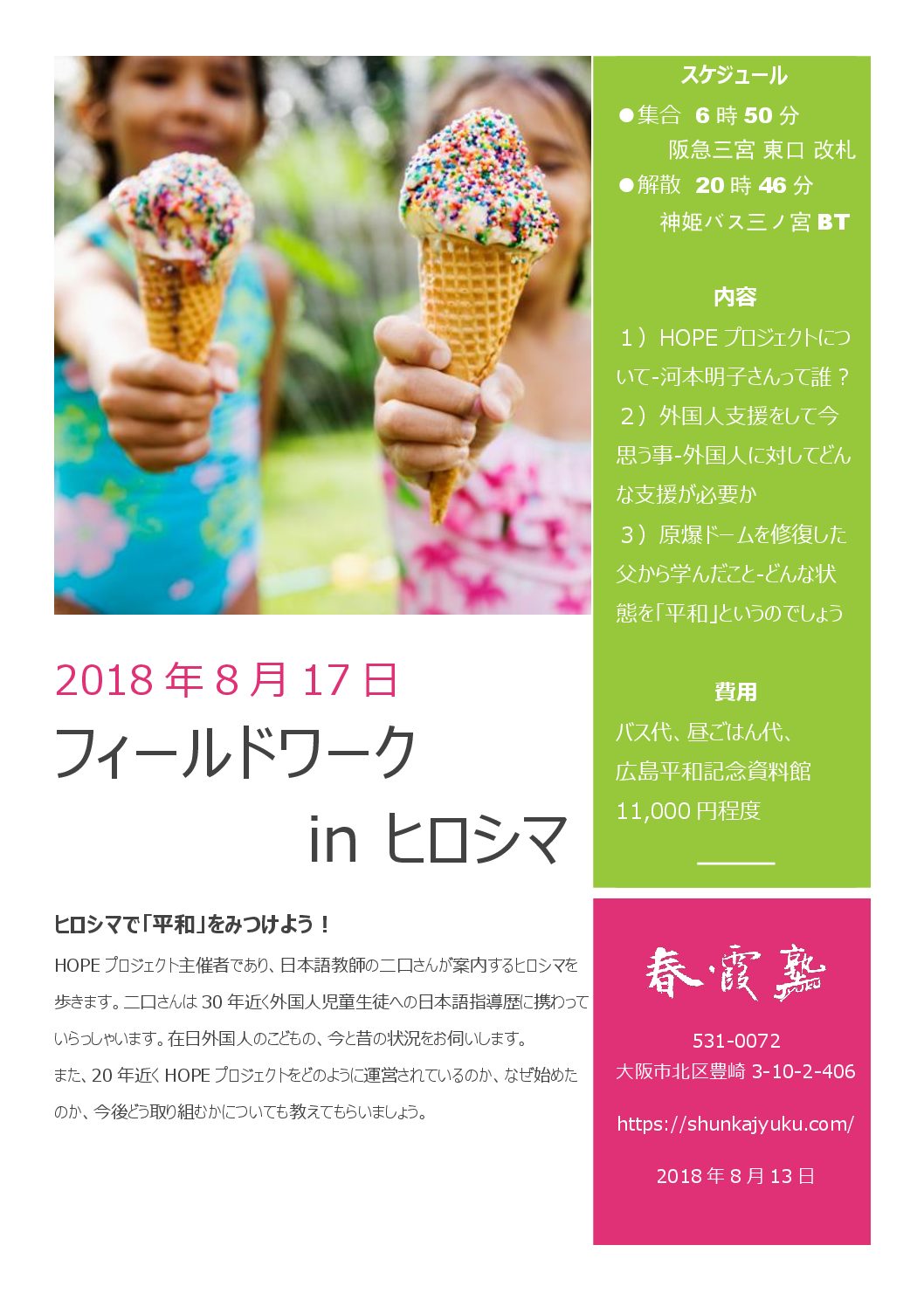 夏休み中には広島市にフィールドワークに行き、日本語教育の先駆者に会います。また平和記念館を見学することが決まっています。1967年の原爆ドーム第一期保存工事現場監督だった方の解説を聞くことができます。