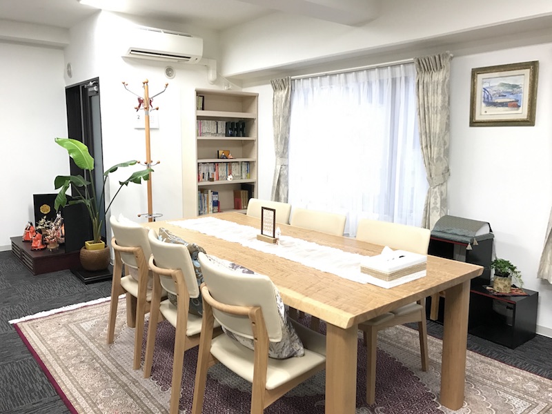 都会の中心地とは思えない静かな学習環境です。タモの樹から切り出したメインテーブルではグループワーク、自習コーナーでは進度に応じた英語のトレーニングのほかに、自分のペースで自学自習をすることもできます。大阪市内だけではなく、京都、神戸、奈良からも通学可能なアクセスポイントです。
