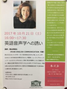 10月22日土曜日16 :00から17:30までMUSE English Communication代表の南出照美先生のレッスンによる春霞塾サロン「英語音声学への誘い 」を実施しました。