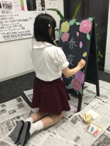 塾の「看板娘」、MANAMIの今月の看板です。 2017年5月。今月は薔薇。薔薇フェアが東京でも開催されていますが、姿も香りもみんな大好き、薔薇の看板です。