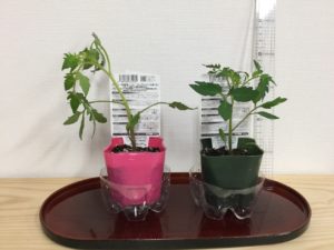 塾生のもえりんが学校からトマトの苗を2株もらって帰ってくれました。おっきな実がなるサングランテと、どっさりトマトが実るルビーノ。